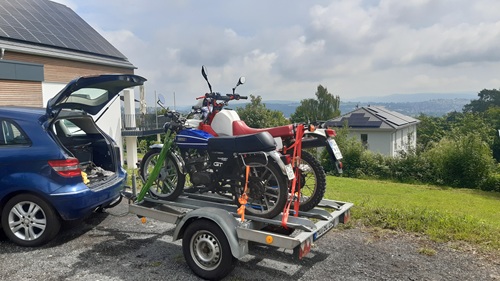 Am nächsten Tag ging es dann wieder heim, die XT mit auf dem Anhänger. Die läuft aber schon wieder mit neuem Gummi.