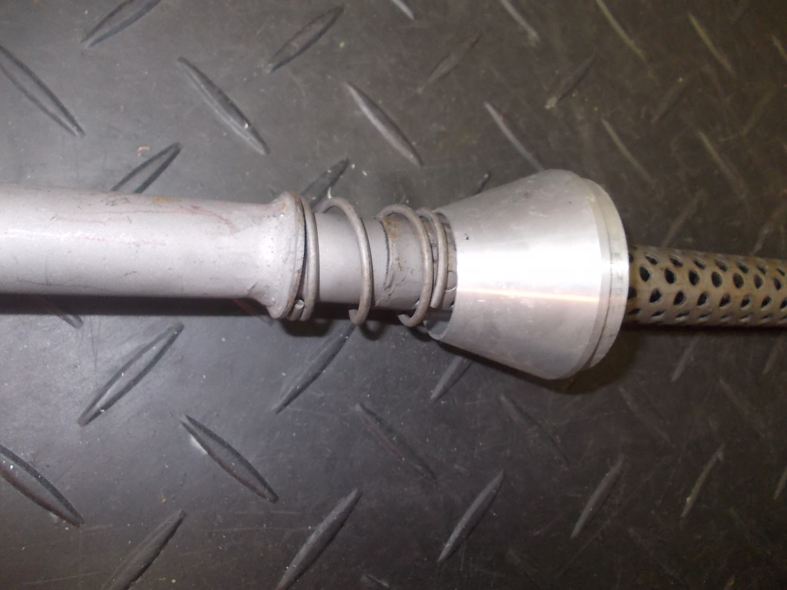 So hier sieht man die Feder welche in der vorderen Endkappe verschwindet und wie das mit dem Siebrohr zusammengehört.