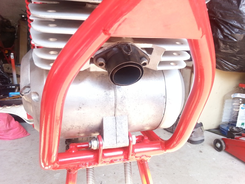 Dann mal den Auspuff, den ich aus Novegro mitgebracht habe, drangesteckt.