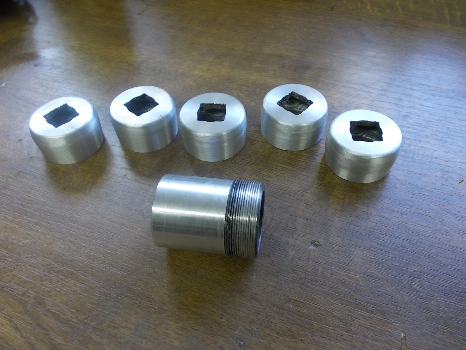 Dann mal eine Aufnahme für die unteren Abschlusskappen gedreht, so passen die perfekt auf die Drehbank. Die müssen jetzt (genau wie die oberen Abschlußkappen) noch an den Polierbock gehalten werden.