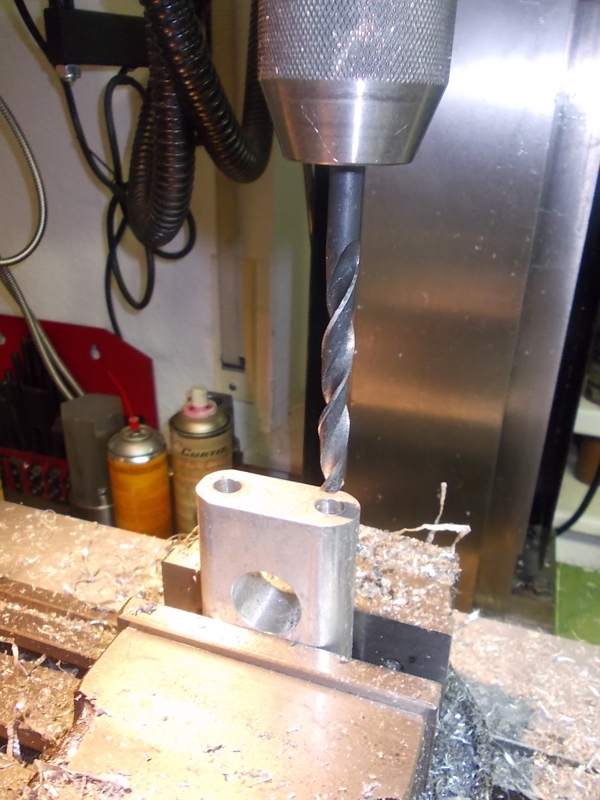 So heute mal losgelegt und erst mal das Loch passend zum Lenker vorgebohrt, dann gefräst und die fehlenden mm mit dem Ausdrehkopf ausgearbeitet.