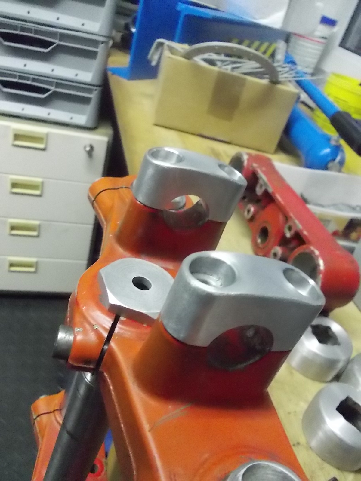 Beim Wühlen noch ne andere untere Gabelbrücke gefunden, die hat 4 x 6mm Bohrungen, passt also. Natürlich auch wieder blitzschnell die Aufnahmen durchgehont (ich glaub das ist jetzt wirklich ein Fetisch von mir :roll: )