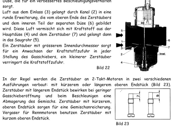 Nun habe ich wieder was dazugelernt. War mir gar nicht klar, dass es 2T- und 4T-Vergaser gibt und dummerweise habe ich einen 4T-PHBL bestellt. Von aißen sieht man das nicht und von innen muss man schon mal genauer hinschauen: Bemerkt habe ich das erst, als ich mal wieder keine vernünftige Einstellung mit dem neuen Vergaser hinbekommen habe. Nachdem alle Düsen hin und her gewechselt waren und die Nadel rauf und runter gesetzt, bin ich letztlich am Zerstäuber hängen geblieben. Den 260er hatte ich bestellt, brachte aber nichts. Aufklärung brachte das Dellorto Handbuch. Da gibt es für den 2T-Vergaser verschiedene Zerstäuber.
