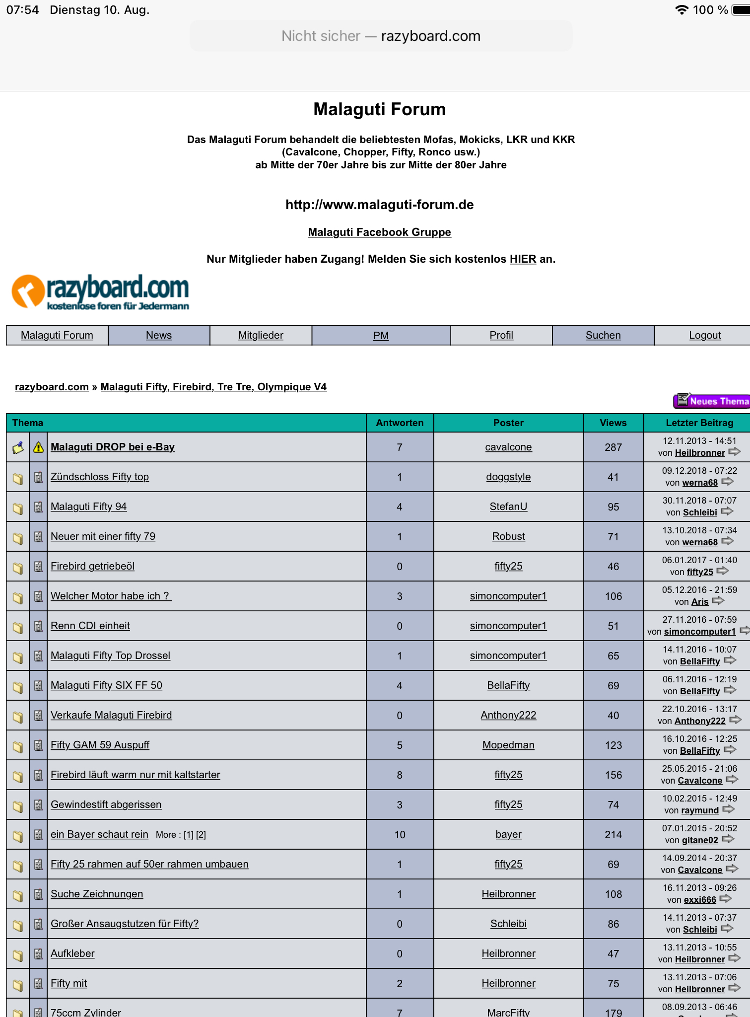 http://www.malaguti-forum.de/ ist zur Zeit 'nicht geöffnet', das Wissen dort ist 'verschlossen'?!