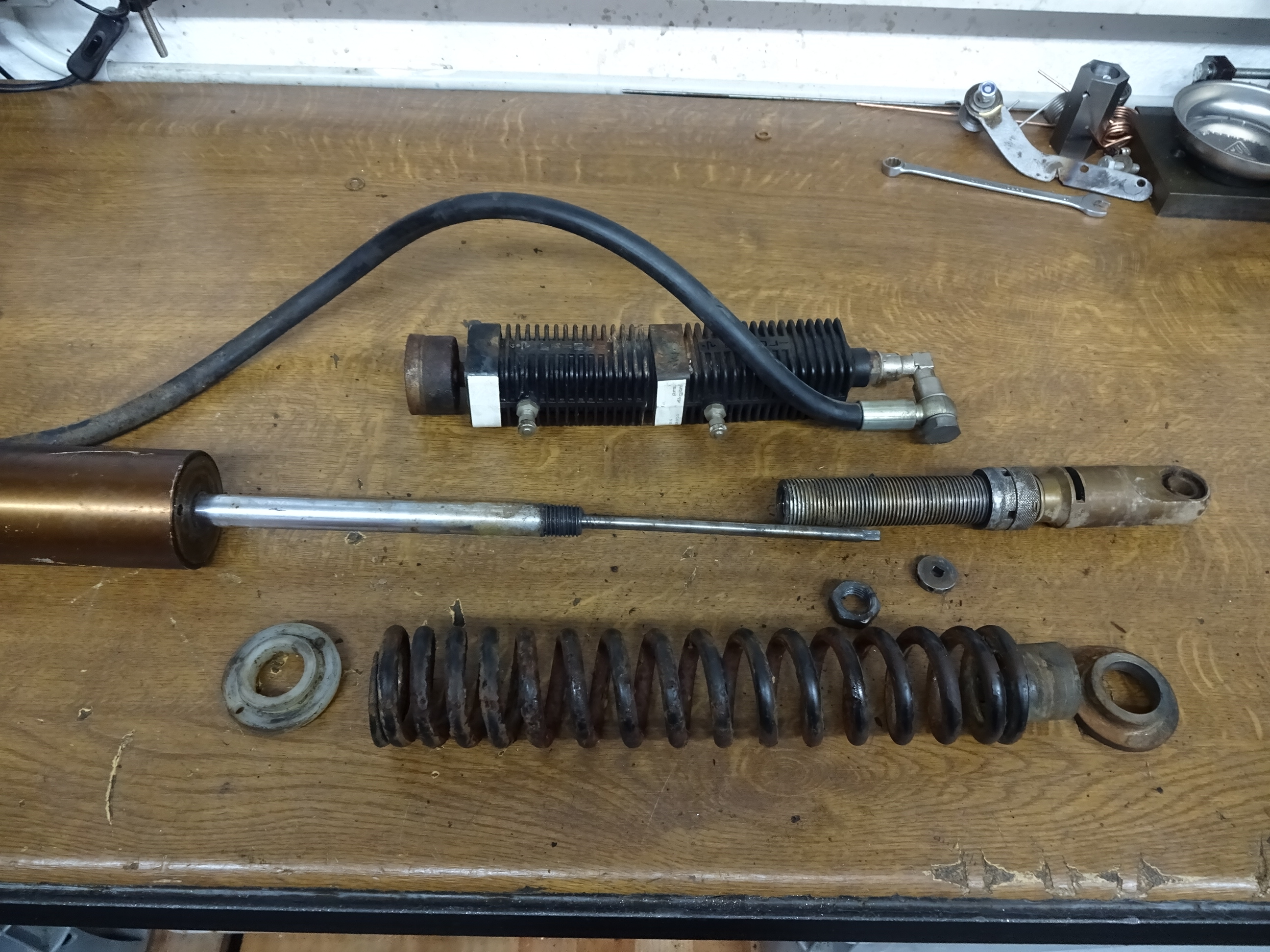 Heute mal das Federbein auf die Werkbank und die Federvorspannung komplett losgeschraubt.