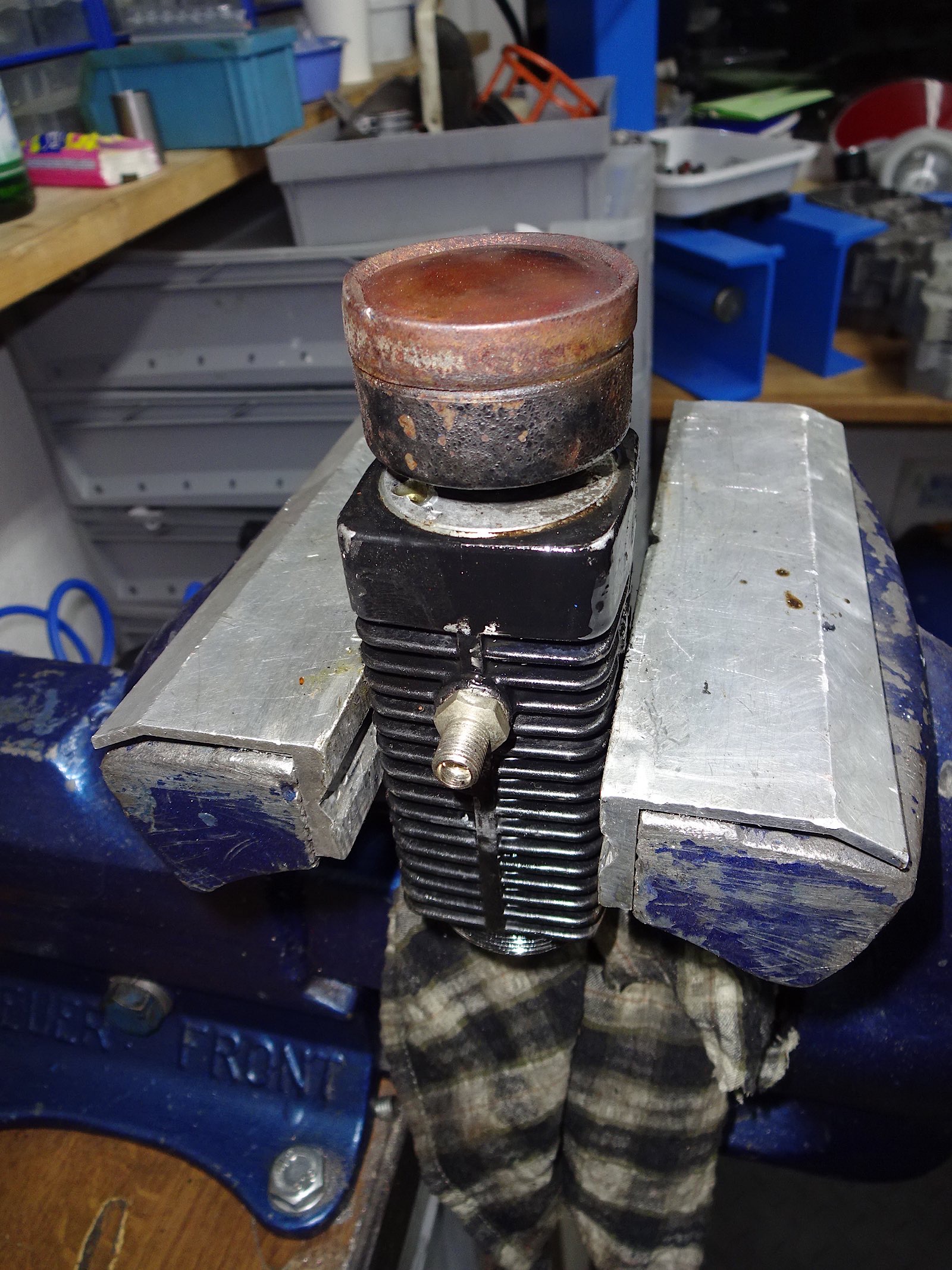 Weitere Zerlegung ist erst mal nicht sofort lösbar, da muss ich mal ein wenig nachdenken, wie das gehen könnte. Gut ist, die Kolbenstange macht nen sehr guten Eindruck, den minimalen Rostpickel schleif ich so raus. Da muss nichts neu gemacht, oder zu Wissing gebracht werden