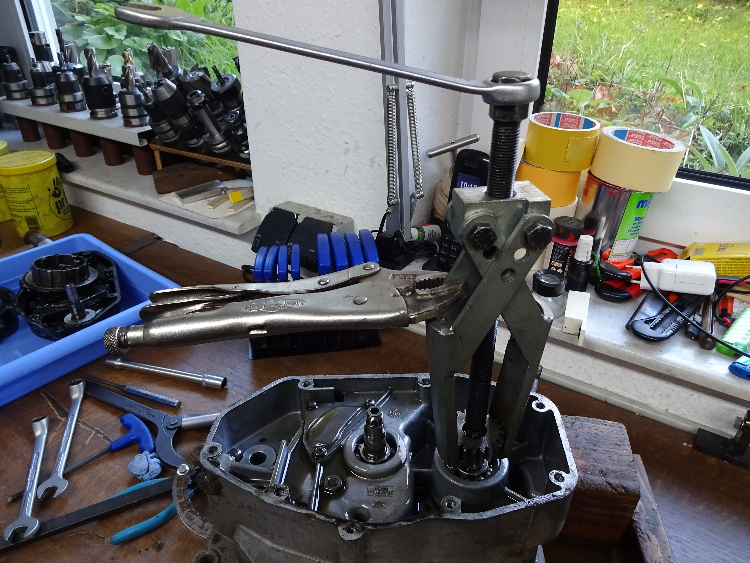 Das riesige Primärzahnrad ging mit dem Minarelliabzieher (gefunden in Novegro, 7 Euro