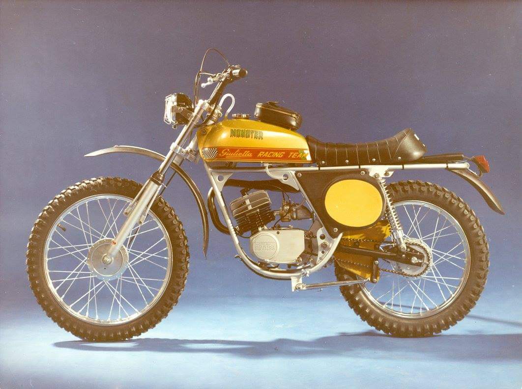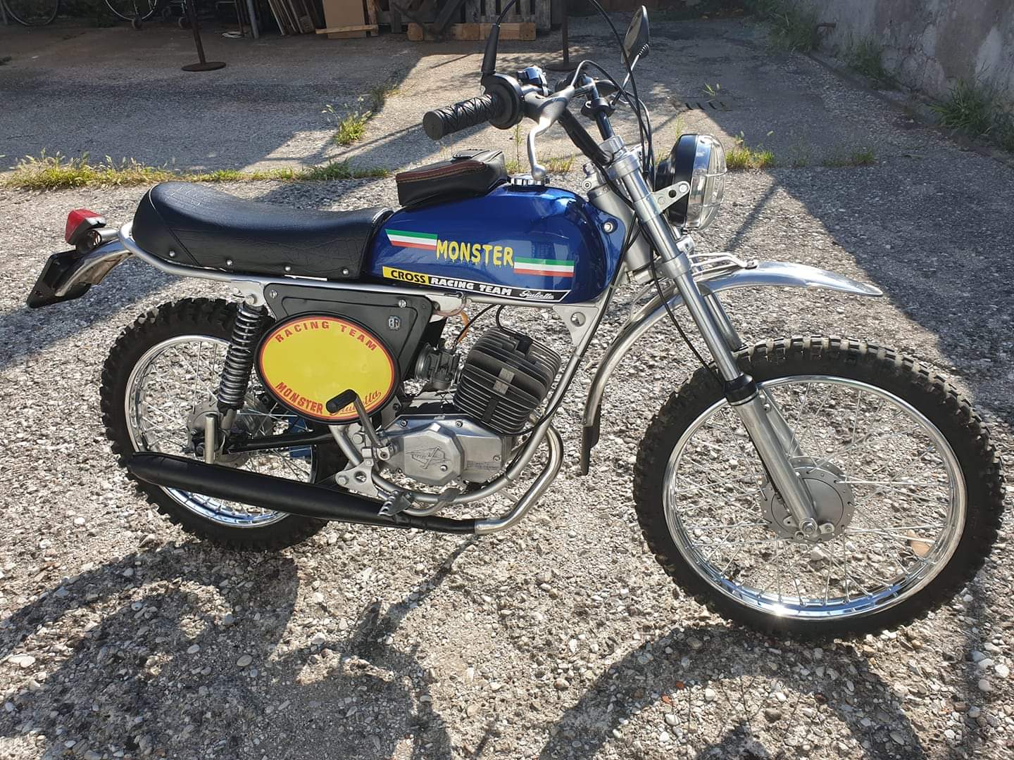 Hatten uns anfangs (teils) orig. Prospekte der Monster im Netz zusammengekauft um die Technik annähernd wieder original herzustellen, aber: Die orig. Krümmer- und Auspuffführung hat uns überhaupt nicht gefallen; der orig. Scheinwerfer (mit Kunststoffverstrebungen) ist billigste Plaste gewesen und teilweise durch zugucken zerbröselt; das in einer Gummischlaufe aufgehängte Rücklicht ebenfalls billigstes Plastik, die orig. Twinshocks sind den Namen nicht wert (qualitativ sowie funktional); die quasi nicht vorhandene Elektrik (besserer Klingeldraht!) haben wir komplett rausgeschmissen und mit einem modernen Kabelbaum versehen und uns dann weiter entschieden einigermaßen vernünftige/neuere/moderne Teile zu verbauen (die orig. Teile sind natürlich noch vorhanden und eingelagert). In mehreren Berichten über die Monster Baureihe haben wir gelesen, das diese eine "günstige Alternative zu den damals üblichen Mopeds" sein sollte...qualitativ stimmt/e das leider ebenfalls ;-) ) .