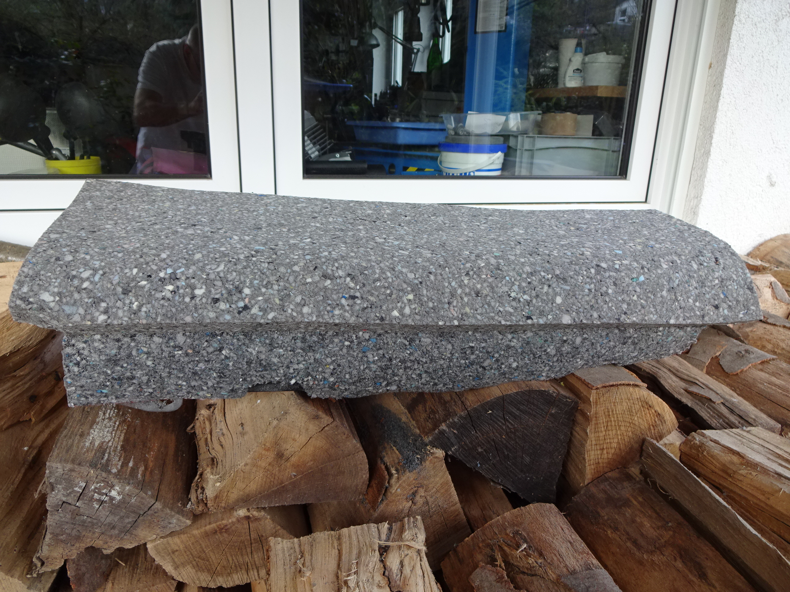 Nach dem Aufkleben des Schaumstoffs suf das Grundgestell zeigte sich (Dank des Superkleber)! Das ich in der Mitte zu viel weggenommen hatte, es entstand eine tiefe Delle