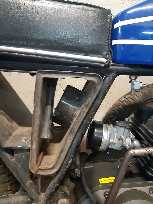 das Lufigehäuse gab es ja mit Filtereinsatz und ohne. Ich hab das ohne. Der eigentliche Luftfilter ist der popelige Drahtfilter, der direkt am Vergaser sitzt. Zwecks Geräuschdämmung geht dann klassisch ein dicker Gummischlauch an den Lufikasten. Die vier Löcher auf deinem Bild dienen bei meiner dazu, den Stutzen für den Schlauch aufzunehmen und im Gehäuse wird da ein kleiner "Becher"gehalten, der die Luftzufuhr über 4 Stück 4,5mm Löcher reduziert. Das senkrechte Röhrchen auf dem Bild ist wohl nochmal zur Geräuschdämmung und geht nach oben unter den Sitz. Die besseren Modelle hatten wohl einen richtigen Luftfiltereinsatz, denke bei Felix und bei deiner Super Six wird das so sein.