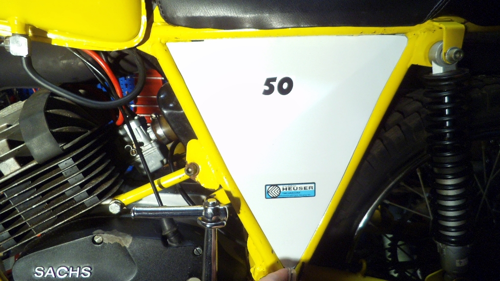 Bei der Ancillotti ist ein Minarelli Motor verbaut, hier bei der HMT ein Sachsmotor. Gab es in verschiedene Varianten .
