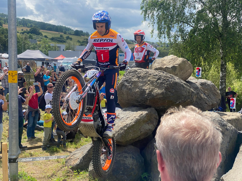 Gestern war ich in Neunkirchen. Der Zufall wollte es, dass ich genau zu dem Zeitpunkt an einigen Sektionen ankam, als die No 1, Toni Bou, gerade seine Meisterklasse zeigte. Und ich wunderte mich schon, warum da sich so viele Besucher hinquetschten.