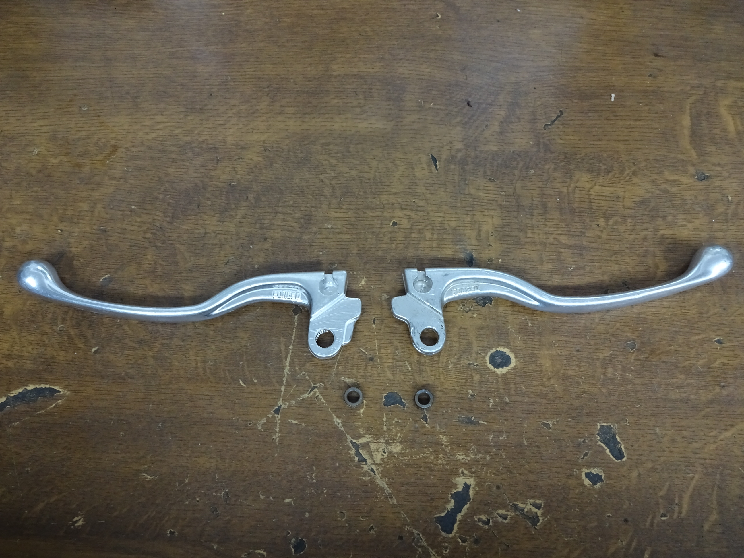 Da ich ja mit dem rechten Bein immer dumm an der Schraube des Kupplungshebel hängen blieb, wollte ich den einfach drehen. Ging aber nicht, da die Bohrung/Verzahnung leicht konisch und der Bund auf beiden Seiten auch noch unterschiedlich war.