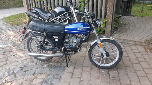 Jetzt war ich heute mit einem Kumpel in Forchtenberg auf einem kleinen Treffen, 70 km hin und 70 km zurück. Da habe ich vorher eine Honda MB5 Resonanztüte montiert. Damit läuft der Motor mit der selben Vergasereinstellung untenrum ein Fitzelchen schwächer, dreht aber oben viel kräftiger und freier raus. Läuft mit dem P4 und Serienübersetzung an der GT 4 ca. 65 auf der Geraden. Den Berg rauf aber auch :-). Bei leichtem Gefälle auch mal 70 und ein bisschen drüber. Gefühlt könnte man länger übersetzen.