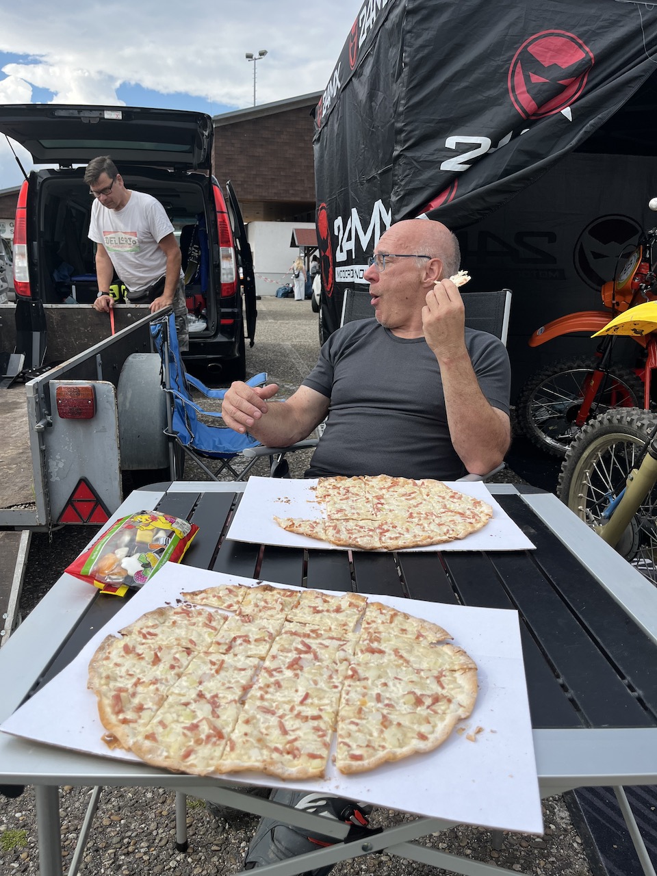 Heute morgen Gott sein Dank recht früh (7:15) aufgestanden und zusammengepackt (Matratze und Co. ausladen, Moped rein, Pavillon abbauen und alles einladen).