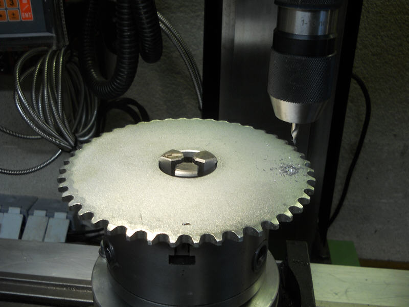 Jetzt musste ja die kleine Innenbohrung passend für die Kettenblattaufnahme vergrößert werden.