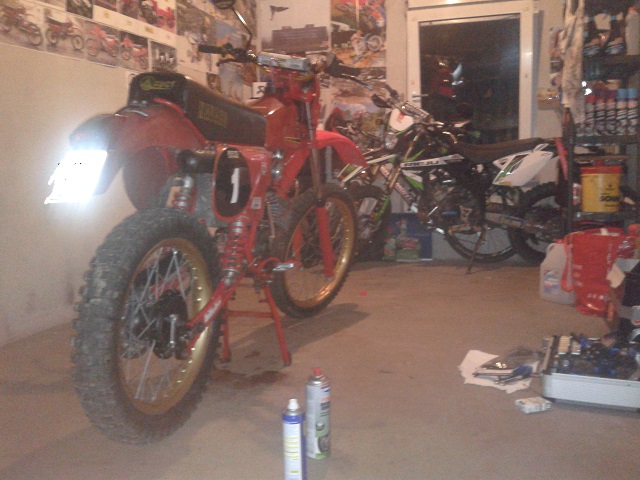 - Selber zugeschnittene Starnummerntafel aus extra dicker Spezialfolie mit Startnummern und selber gemachten ASPES Aufklebern
