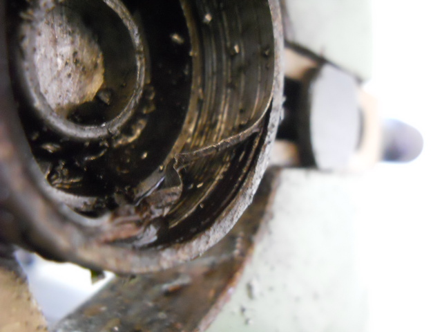 Hier sieht man was ich damit mache. Ich säge die rausgezogene Kolbenstange (eh verrostet) ab und schiebe den Rest zurück. Dann bei niedriger Drehzahl vorsichtig ausgedreht bis kurz vor das Gewinde. Dann kann man das Restgewinde mit nem kleinen Meißel (alter Schraubenzieher