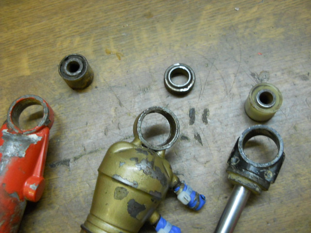 Angefangen habe ich damit mir was zu bauen um die Buchsen aus den Federbeinaugen zu bekommen, Gleich mal so aufgebaut, das ich mit unterschiedlich dicken Büchsen die unterschiedlichen Bohrungen der Federbeinbuchsen auspressen kann.