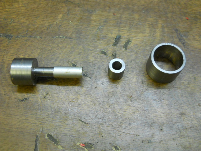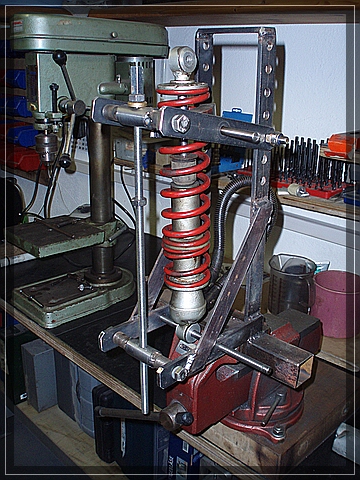 Angefangen habe ich damit mir was zu bauen um die Buchsen aus den Federbeinaugen zu bekommen, Gleich mal so aufgebaut, das ich mit unterschiedlich dicken Büchsen die unterschiedlichen Bohrungen der Federbeinbuchsen auspressen kann.