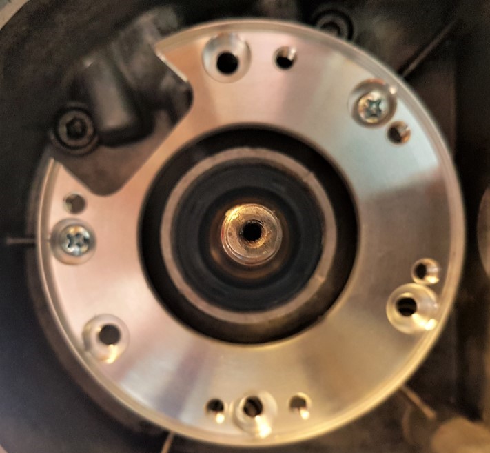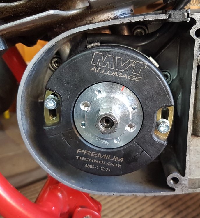 Mit der Messuhr dann den Kolben auf OT und den Rotor dann so eingesetzt, dass die Markierung auf den Strich beim linksdrehenden Pfeil zeigt. Mit der originalen Polradschraube hab ich dann den Rotor angezogen. Das Moped ist dann beim ersten Test sofort angesprungen. Die Agilität ist schon beeindruckend.