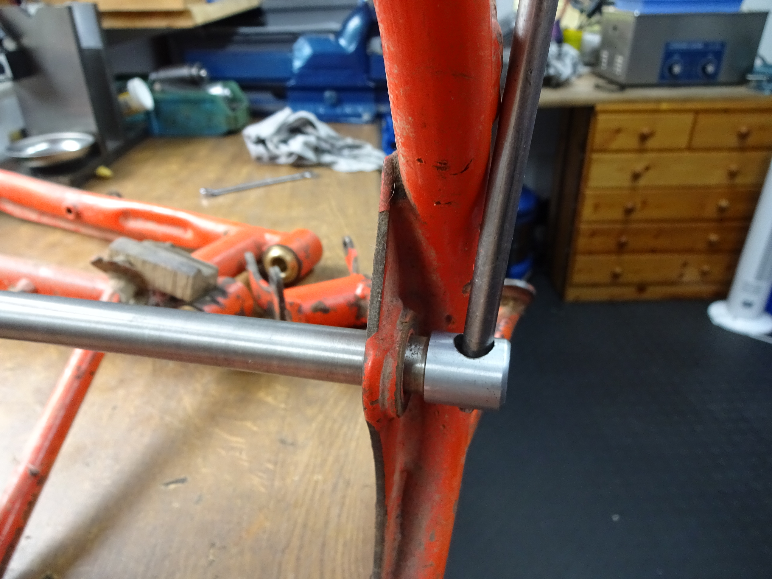 Dann musste ich mir noch ein Werkzeug basteln un die Achse vernünftig festziehen zu können, hätte sonst den Rahmen verkratzt.