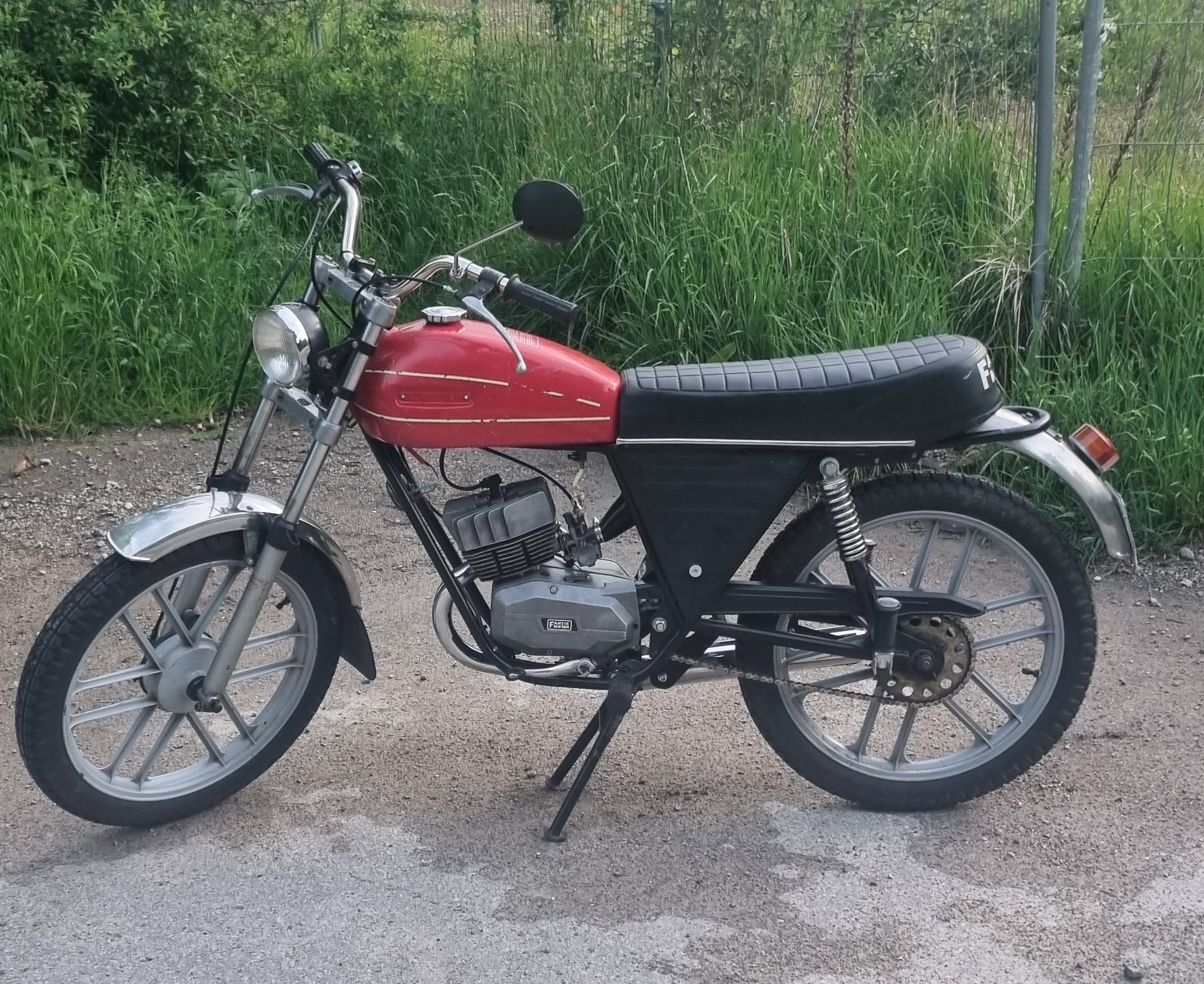 Zu deiner Fantic, soweit ich das beurteilen kann, ist die schon sehr na am original, auch wenn natürlich Chopperauspuff und 19er Vergaser samt 6 Gang Motor da nicht rein gehören.
