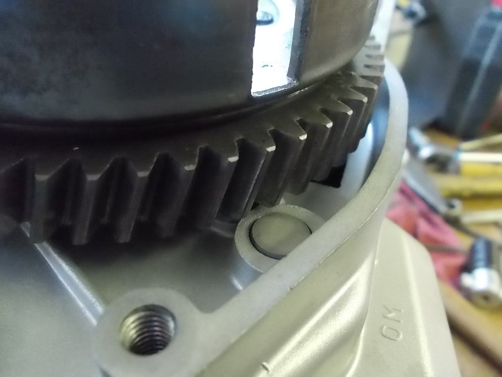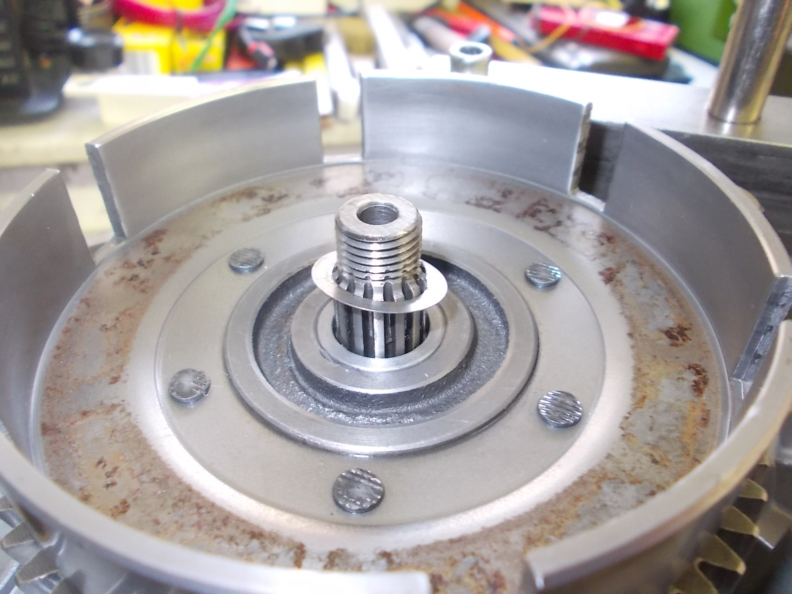 ). Man muss beim UC6 auf die Freigängigkeit des Kupplungskorbes an dieser Stelle achten. Zur Not muss man unter dem Kupplungskorb unterlegen. Da hierbei die Hülse mit hoch wandert, ändert sich nichts am Spiel zum Innenläufer.
