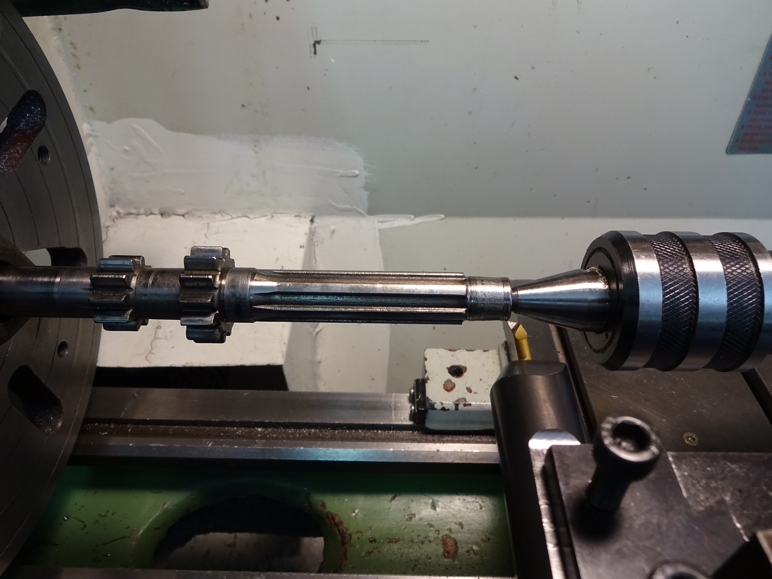 Hauptproblem war eine sauber rundlaufende Einspannung auf der Drehbank. In meinen Spannzangen lief es mir nicht rund genug, also war „aufspannen zwischen den Spitzen“ angesagt. Damit das Drehherz sauber mitgenommen wurde, musste ich erst noch eine Nut in meiner Aufspannplatte nach innen verlängern. So passte dann alles.