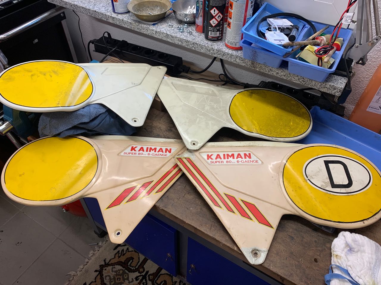 Rolf, das hast du gut gemacht! Sehr schönes Moped ist das geworden. Den originalen hinteren Kotflügel finde ich gar nicht so schlimm. Der Preston / UFO duckt sich etwas unter der Zweimannsitzbank. Kannst du uns den Originalen vergleichsweise mal anschrauben? Die weißen Plastiks bekommst du super mit Bref gereinigt. Bis auf die UV-Ferfärbung.