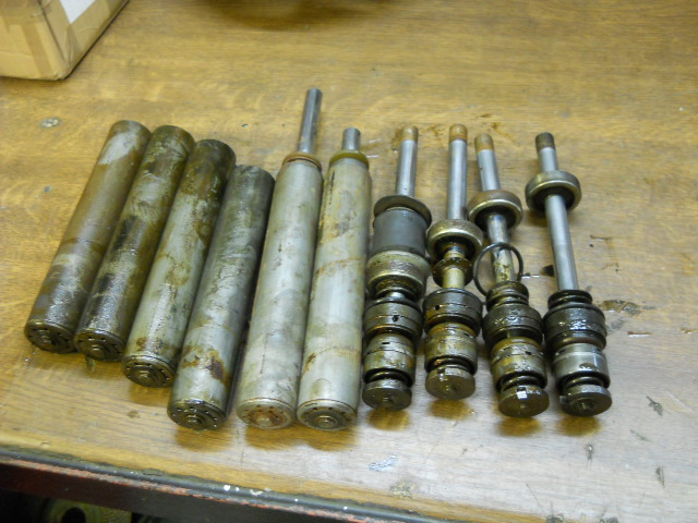 Angefangen habe ich damit mir was zu bauen um die Buchsen aus den Federbeinaugen zu bekommen, Gleich mal so aufgebaut, das ich mit unterschiedlich dicken Büchsen die unterschiedlichen Bohrungen der Federbeinbuchsen auspressen kann.