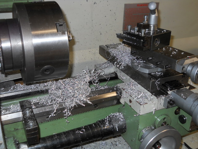 Um dann die Federbeinaugen von den Kolbenstangen zu bekommen hab ich mir ein Alumaterial genommen und ne 12mm Bohrung sehr fein gebohrt und mit guter Oberfläche ausgedreht. Das Teil der Länge nach durchgesägt und vorher noch mit Querbohrungen versehen. Das Ganze kommt dann nach dem Festziehen in den Schraubstock.