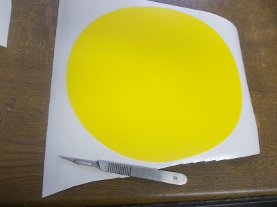 Ich erstelle mir ein gelbes Startnummernschild mit Rand ja indem ich zwei unterschiedlich große Folien erstellen lasse (EPS-Daten erstelle ich ja selbst)
