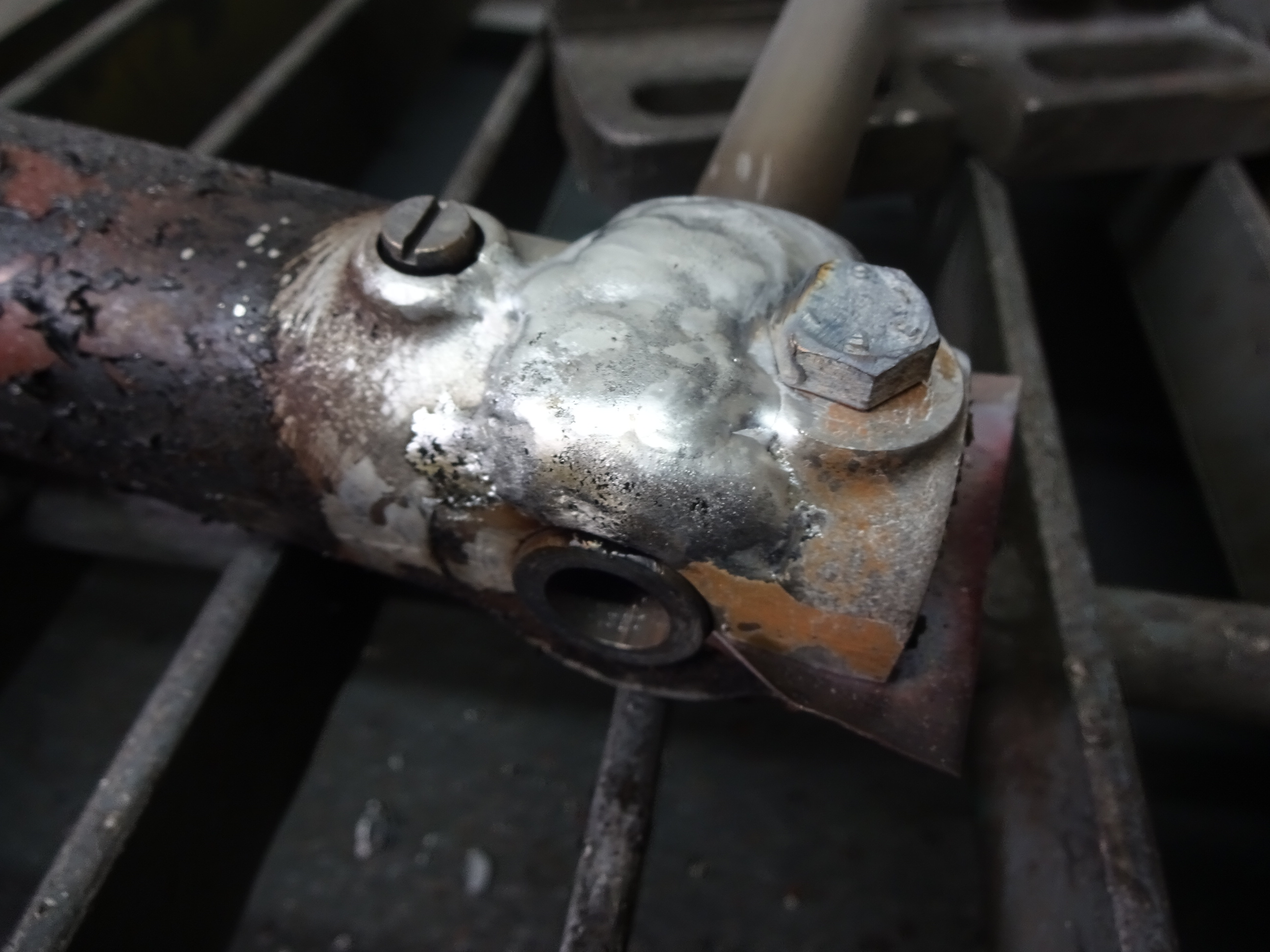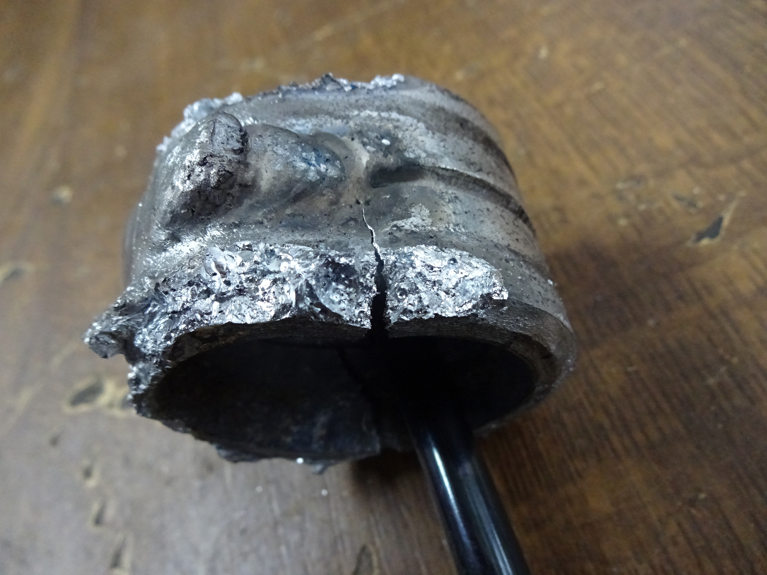 Sieht so aus, wenn man Magnesium mit den normalen Alu Schweisszusatz geschweisst hat. Angepackt und schon fällt es auseinander.