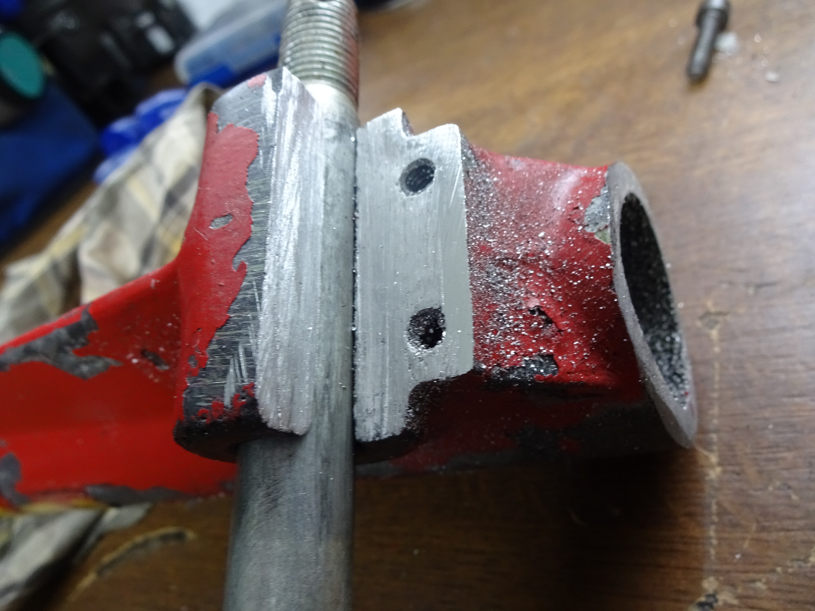 Also Gabeln vorbereitet! Musste aber später die orange Alugabel noch mal die Kerbe flacher schleifen. Ich kam sonst nicht sauber in den Nahtgrund und das wurde so nämlich nivhts.