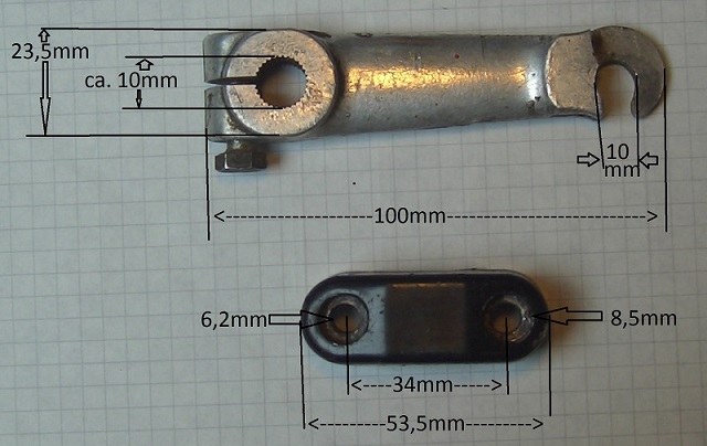 2. Bremshebel für Bremse vorne unten (dito). Orginal stammt von Gabel Trial 80/125.