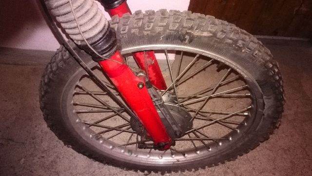 Scheint eine Special zu sein, zumindest weisst die Zugankerstrebe darauf hin. Mach doch mal ein Bild der Gabel wo man da die Bremsankerstrebe und die Höhe der Gabeltauchrohre zum Reifen sehen kann. Auch der Endschalldämpfer könnte ein gesuchter SEM sein, mach auch davon mal Bilder. Dann natürlich eine Aussage zum 70ccm Zylinder, ist es ein Polini? Bilder von Lauffläche waren gut. Gruß Kalle |