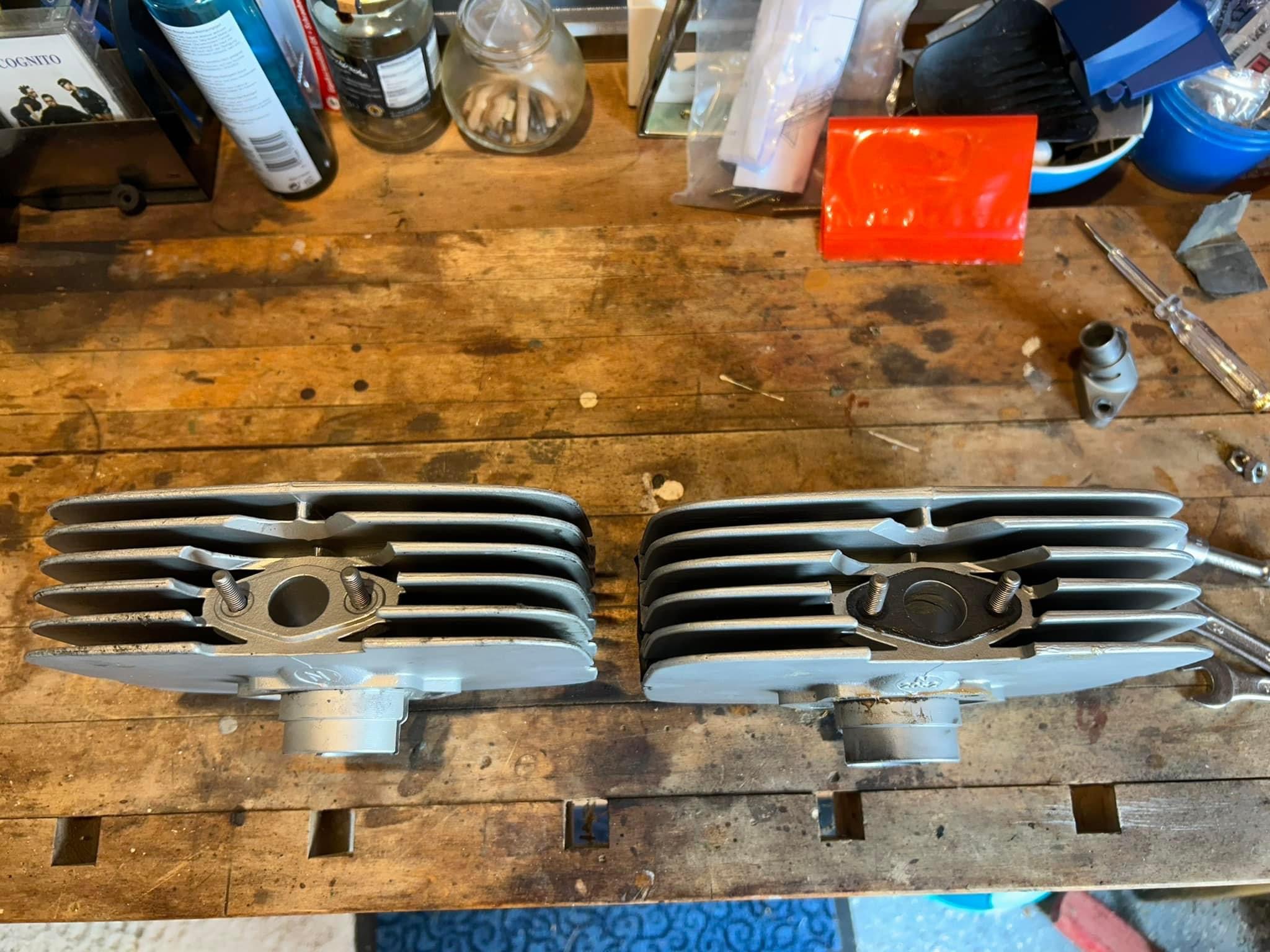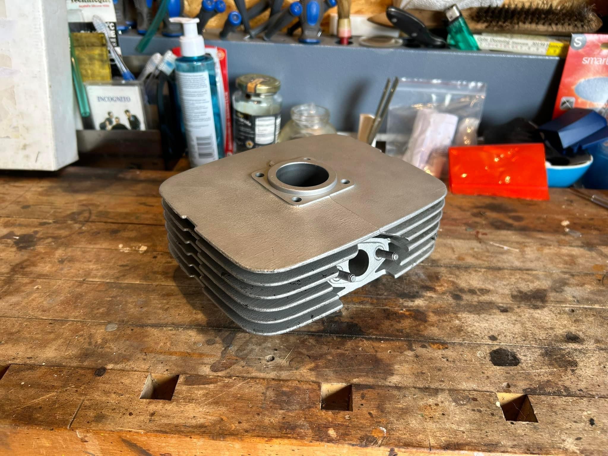 So ich habe mir den 2052 Zylinder für den seltenen Flitzer mit dem Alutank aus Bologna gegönnt, habe beim montieren gesehen, dass ich den bereits drauf hatte aber eben mit den vermurksten Überströmern. Habe den von Petr B. bekommen und Jürgen R. hat ihn wieder glasperlgestrahlt. Danke ::-