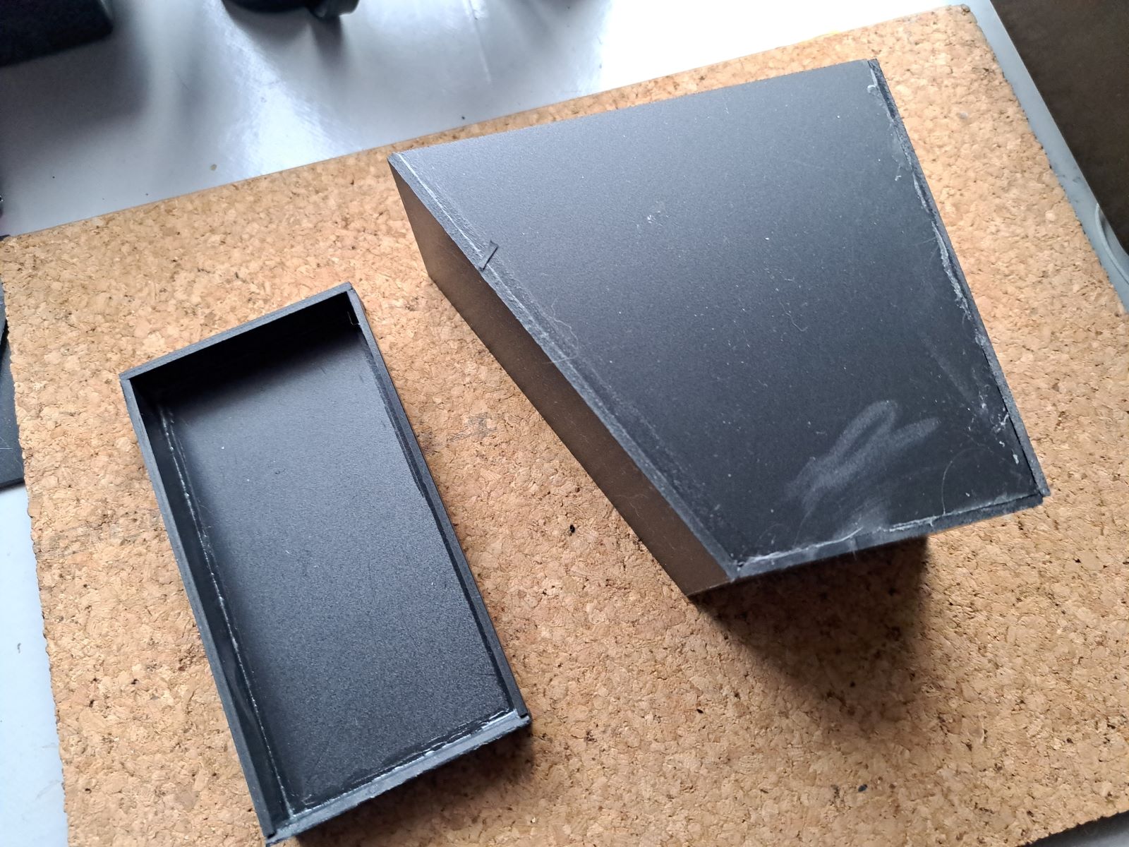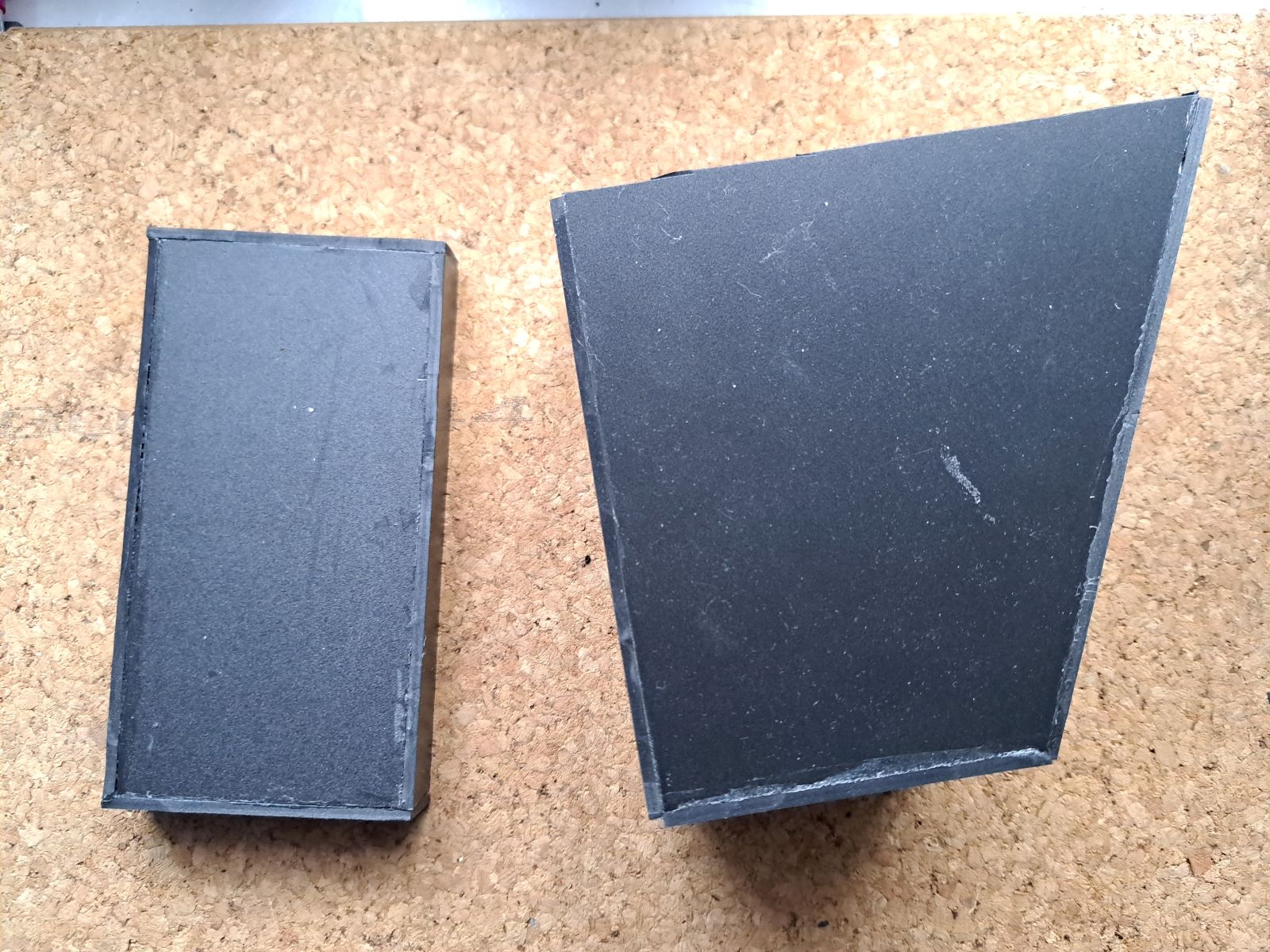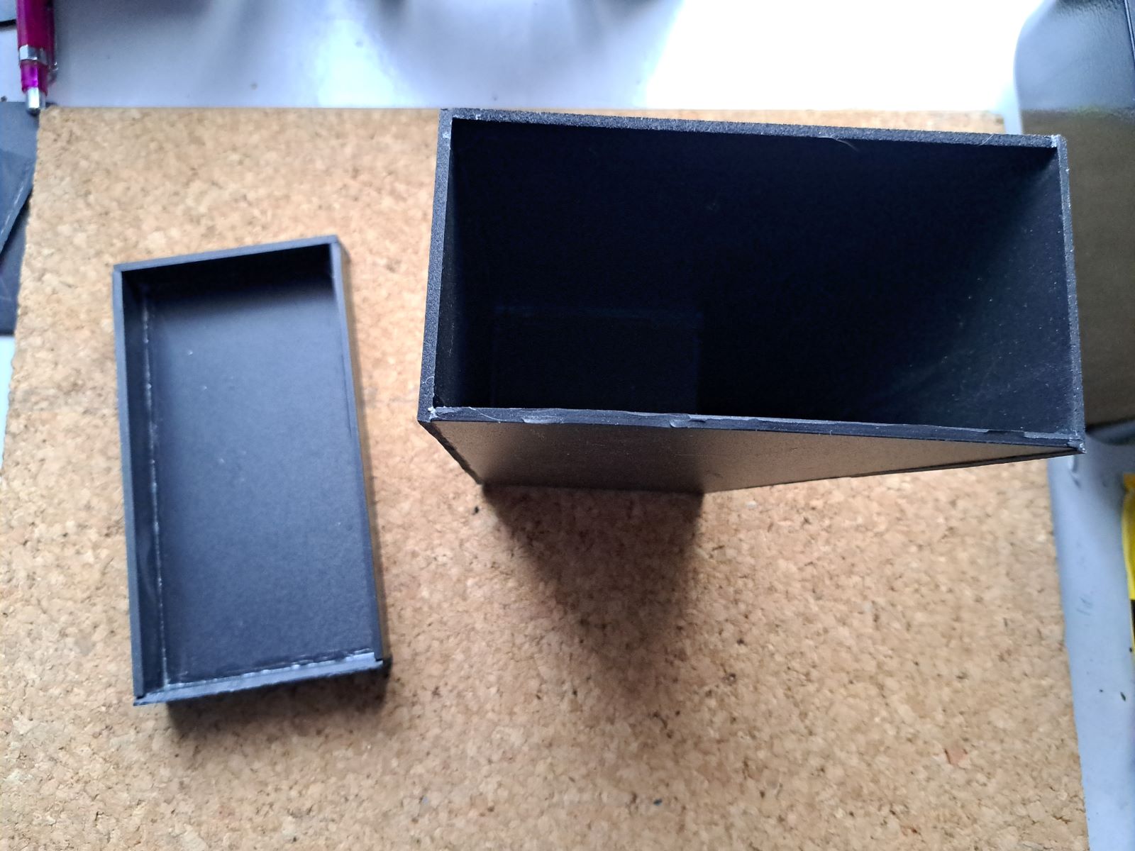 Noch ein Tipp zum Schluß, ich habe mir vor dem schneiden ins Plastik ein Modell aus Karton zusammen geklebt, um die Passform des Kastens zu optimieren. Das hilft enorm wenn man sich nicht sicher ist welche Abmaße passen und welche nicht .