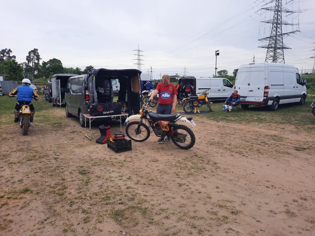 Bin Freitag (alle können fahren Tag) so gegen 11:00 im Fahrerlager aufgeschlagen. Gott sei Dank fuhr gerade jemand weg und ich hatte nen schönen Parkplatz. Gleich neben Niklas und seinen 125er KTMs und Thomas seiner 125er Cagiva (dazu kommt noch was :P )
