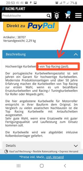 Das Pleuel kostet 70€ plus Versand und ist jeden Pfennig wert