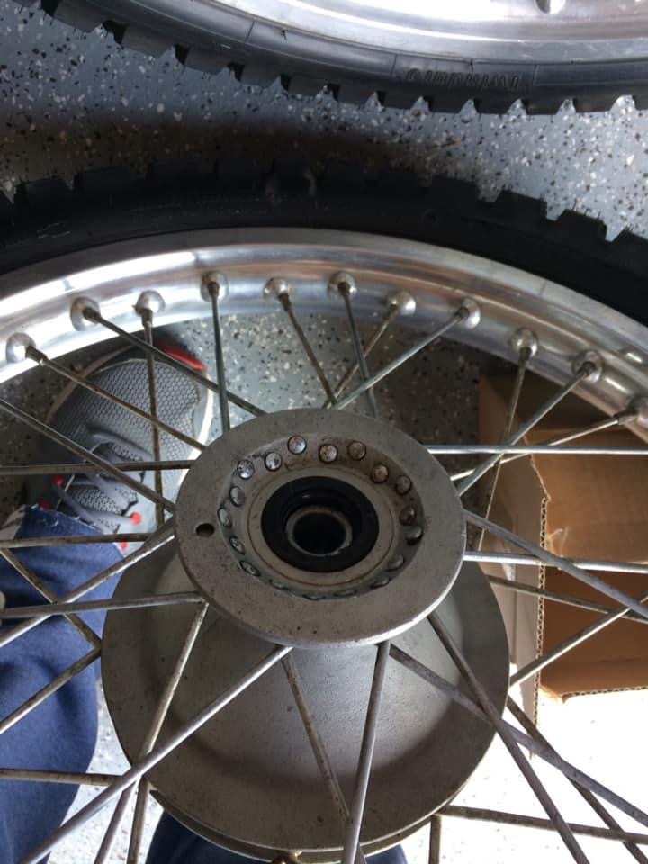 Da ich die Räder ohnehin draußen habe werde ich die Bremsankerplatten jetzt auch noch glasperlstrahlen und die Lager erneuern, das scheinen noch die ersten von 1979 zu sein. Beim Hinterrad sind 2 in der Platte und 2 im Rad wenn ich das richtig sehe. Eigentlich wollte ich nichts weiter machen an den Rädern aber der Lockdown geht ja wohl noch ein Weilchen ;)