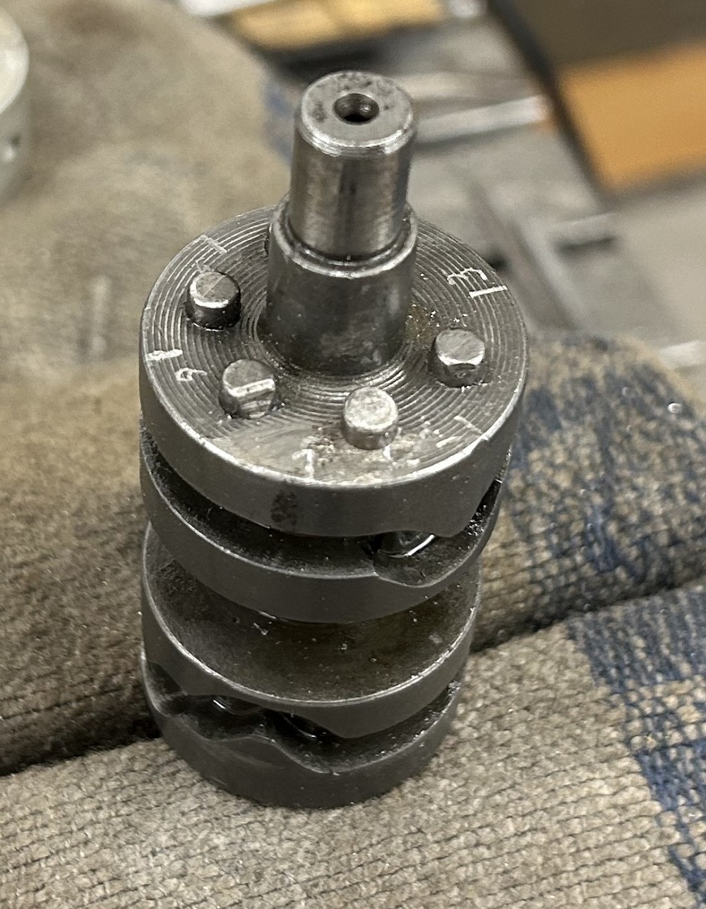Beim stöbern auf Ebay nach Schaltwalzen habe ich dann bemerkt, daß der Passtift auch von unten erreichbar ist, die Bohrung geht durch.